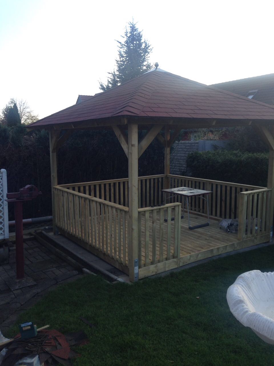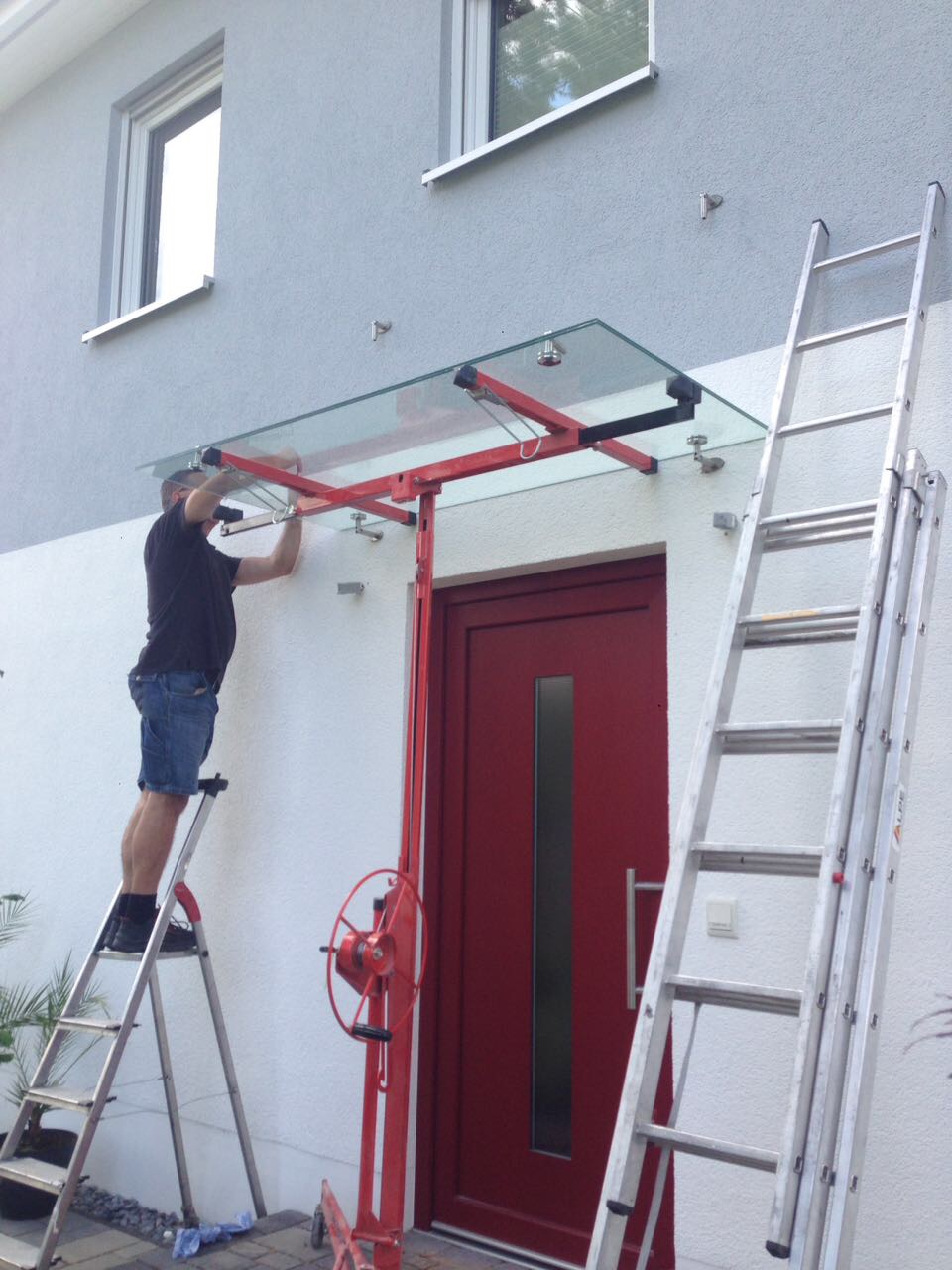 Montage von Markisen, Gartenhäusern, Carports, Vordächern, Werbefahnen